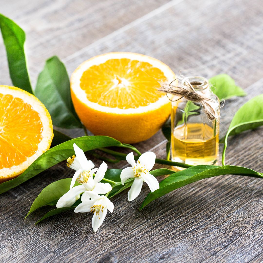 🍊 Eau florale de néroli (fleur d’oranger) – Rafraîchit, tonifie et aide à illuminer le teint.