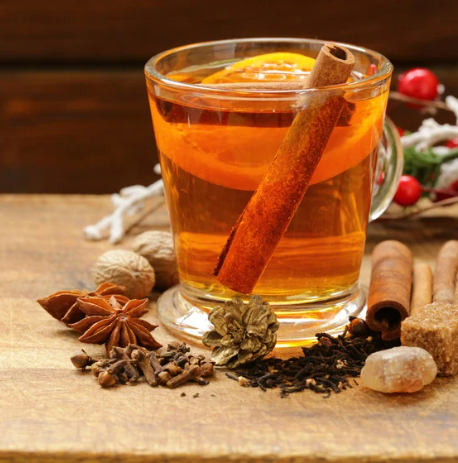 Thé noir Assam, -Inde du Sud, datte (datte, farine de riz), bâtons de cannelle, thé vert China Sencha, écorces d'orange, arôme naturel, badiane, clou de girofle, cardamome, cardamome moulue, arôme naturel d'orange, muscade, vanille. Mélange premium élaboré par Alveus avec des ingrédients issus de l'agriculture durable et des arômes naturels